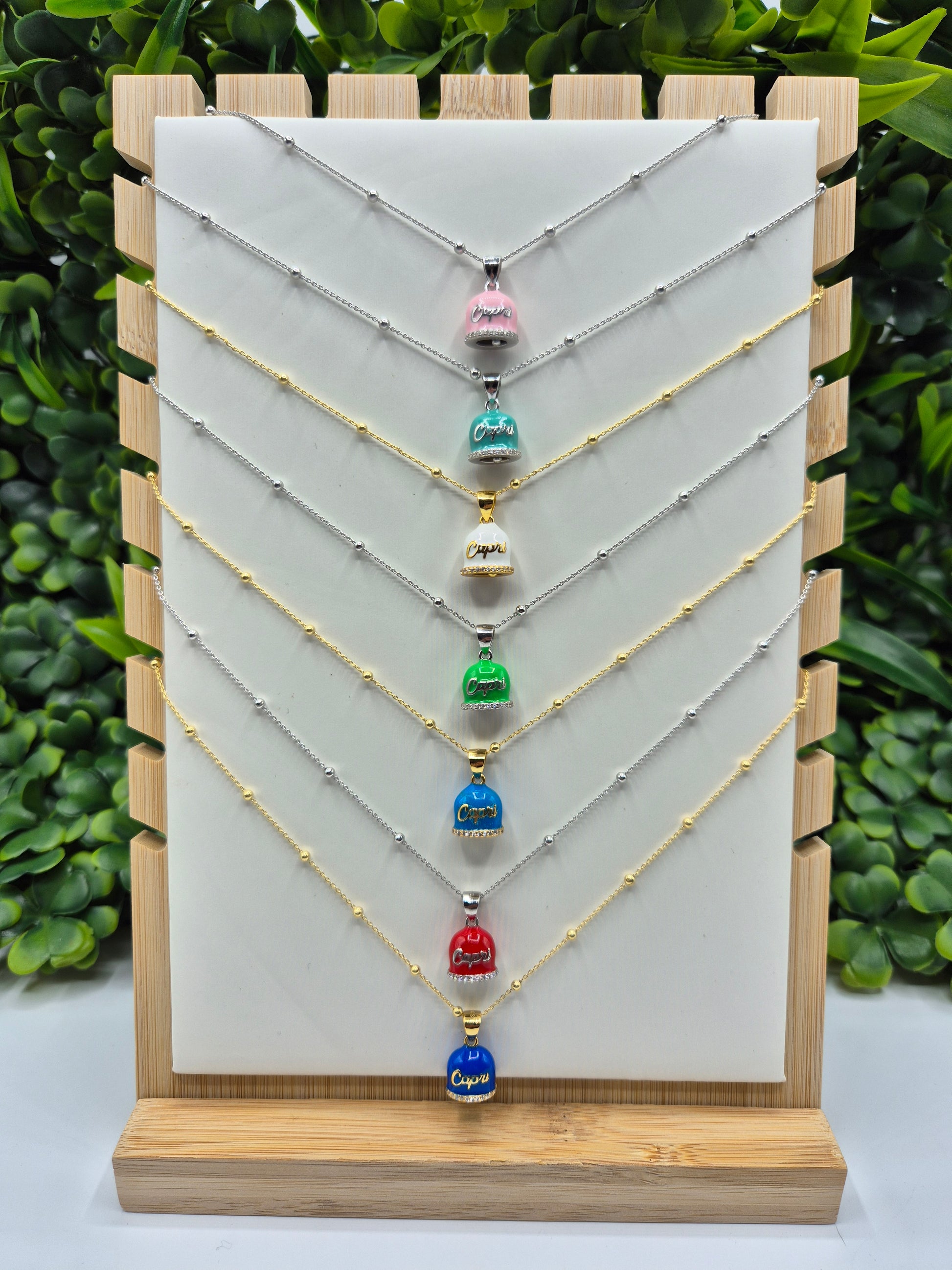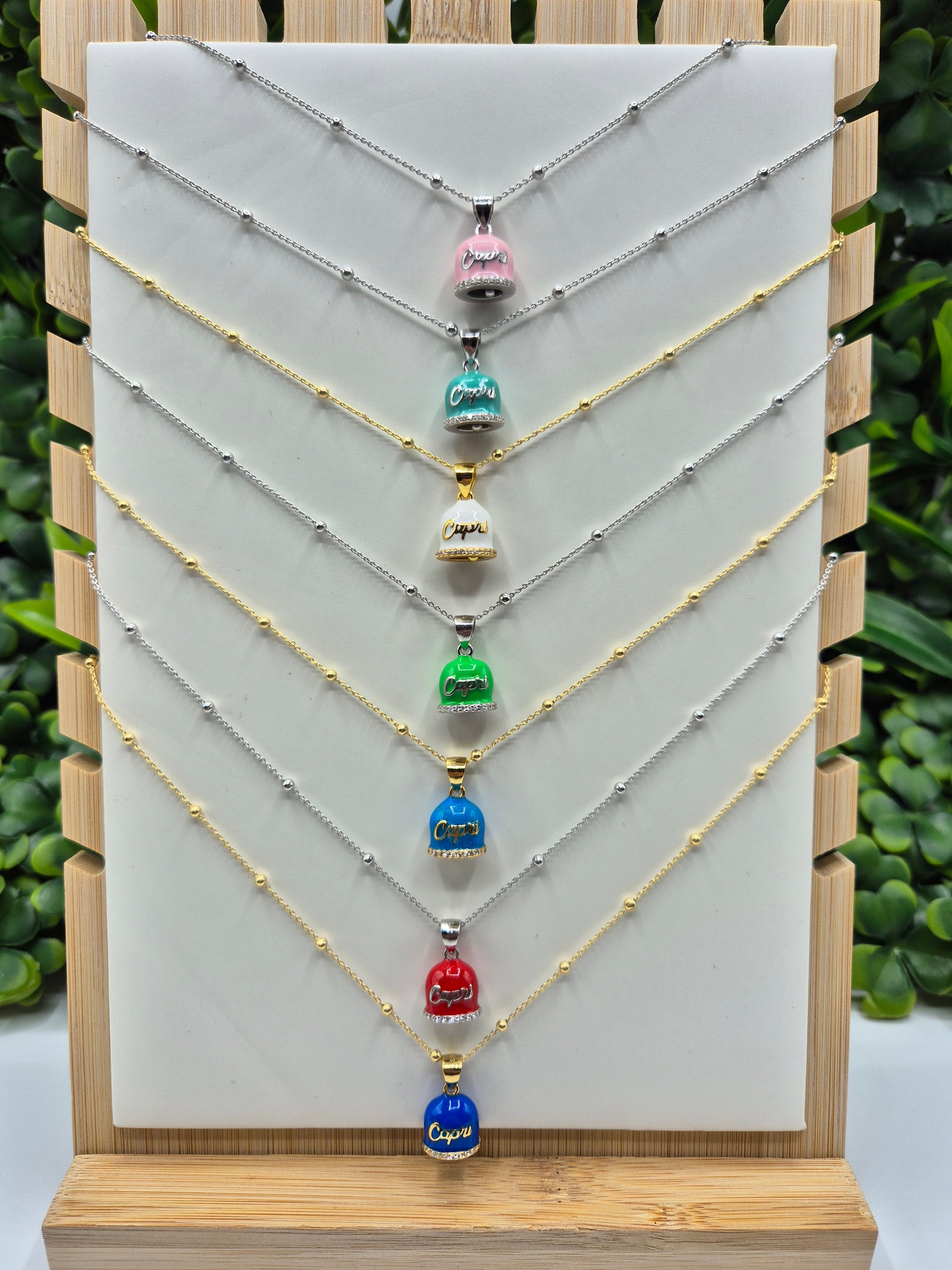 Collana pallini 45 cm con campanella capri smaltata in argento 925.