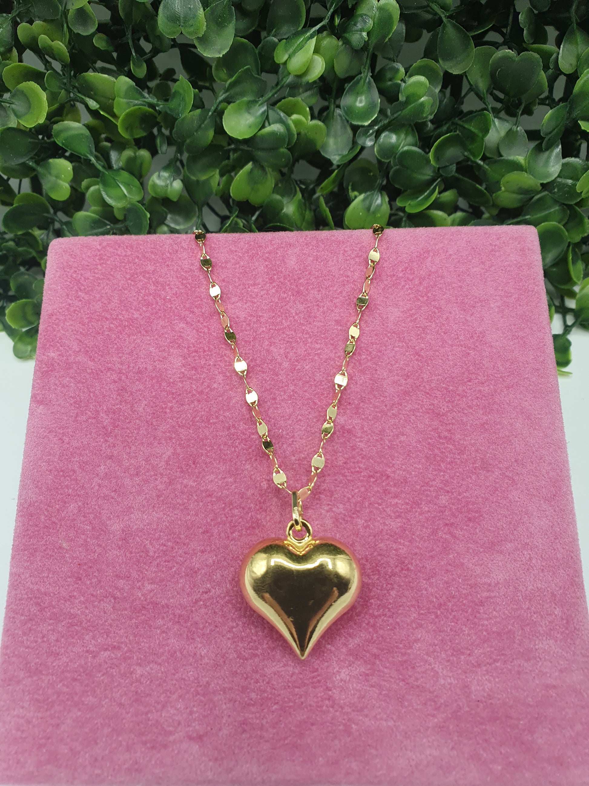 Collana Specchiata con ciondolo cuore bombato (dimensione 2cm x 2cm) in argento 925 placcato oro