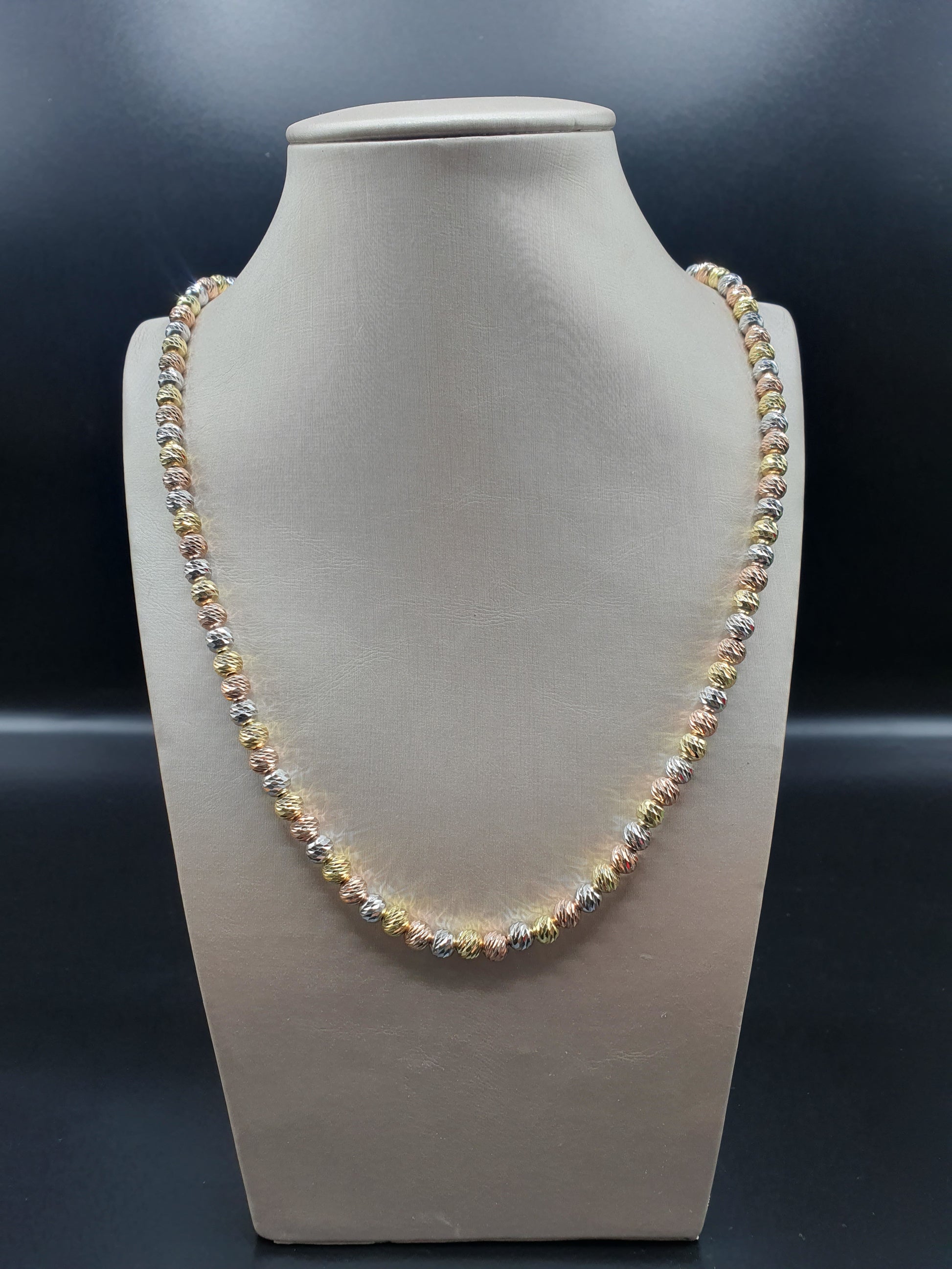 Collana 50 cm con palline taglio brillante 3 colori.In argento 925.