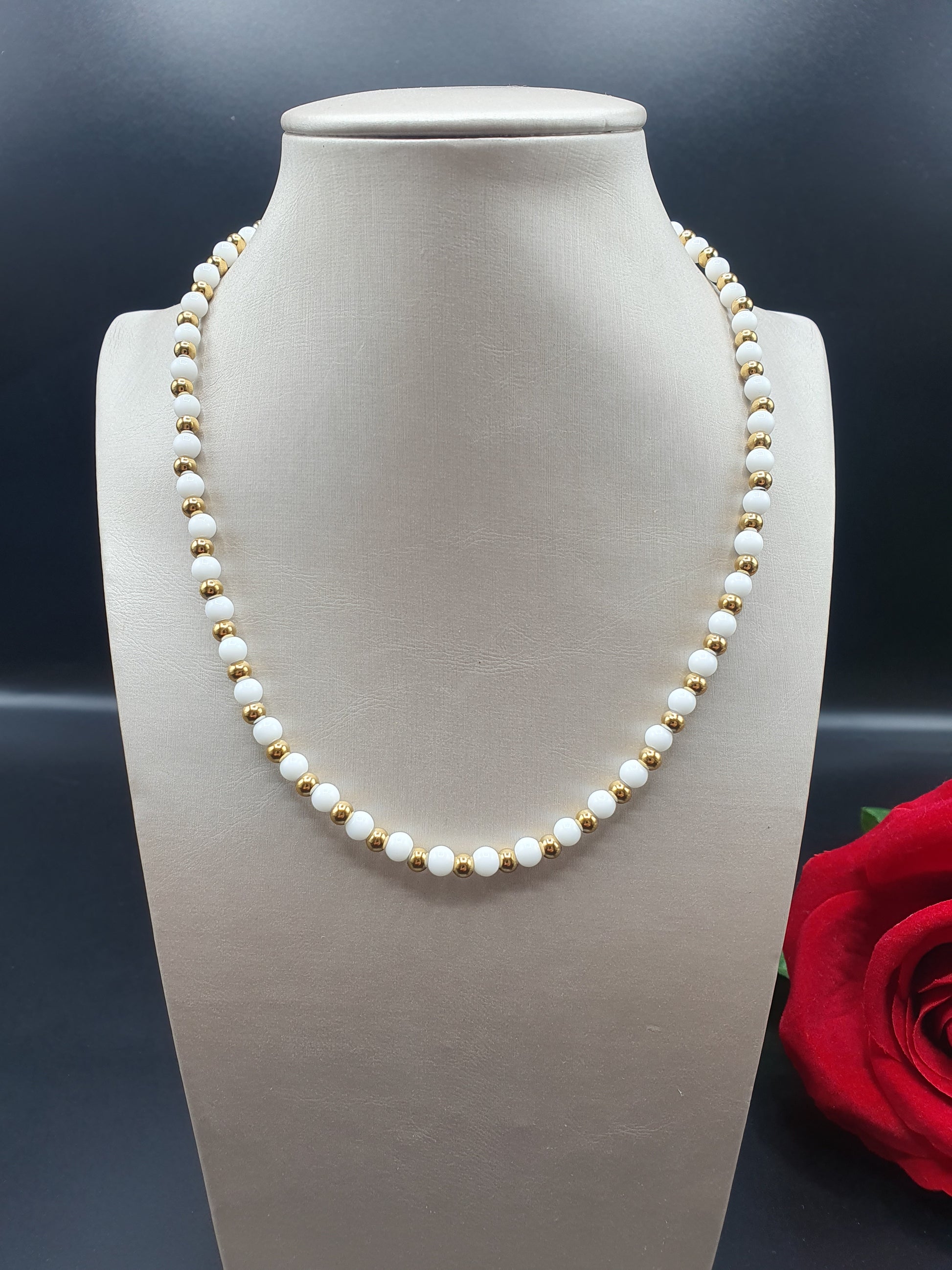 Collana choker 37+2 cm di catena regolabile con perle e palline colore oro in acciaio .
