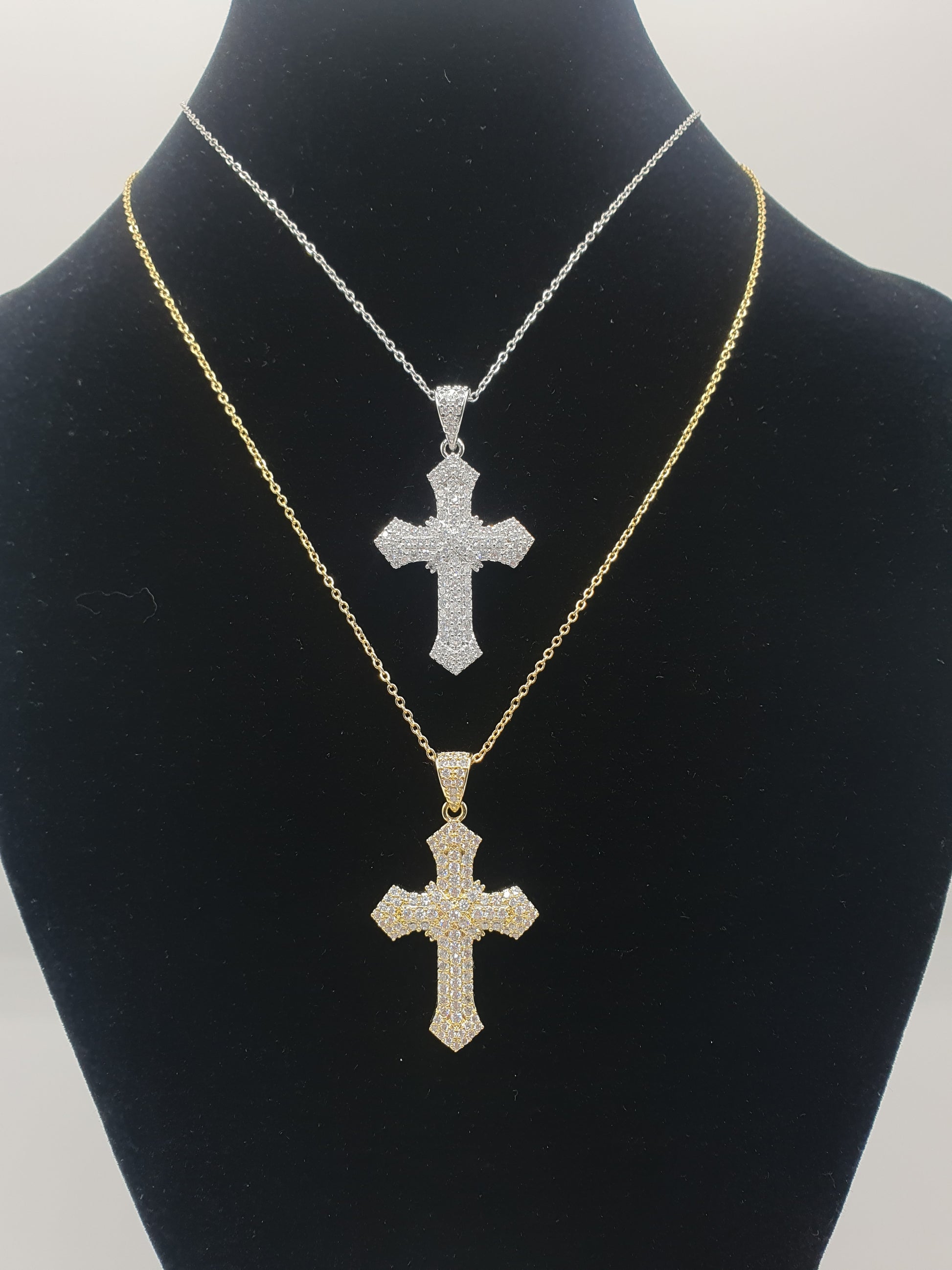 Collana 40+5 cm con croce zirconata in acciaio inox.