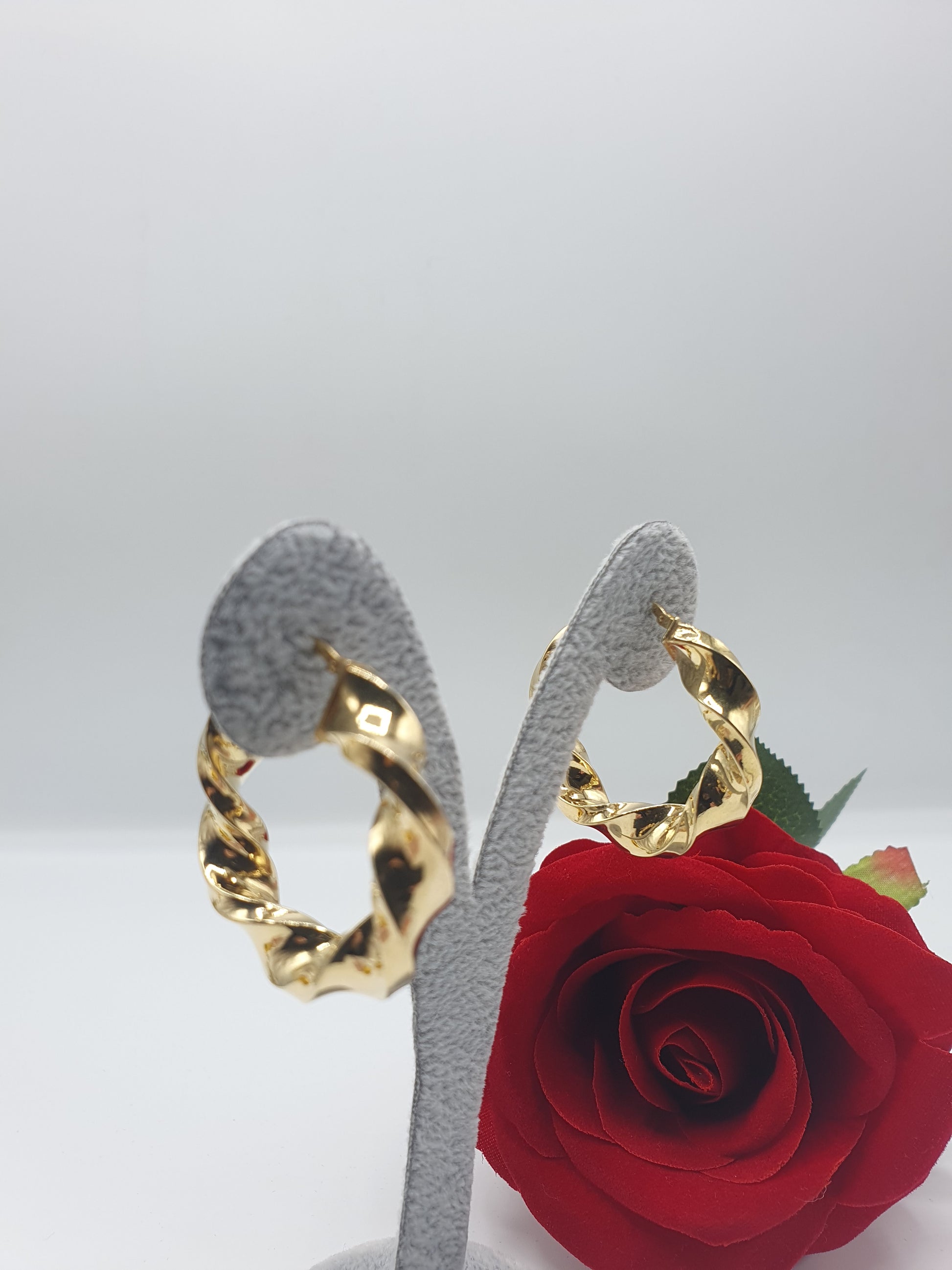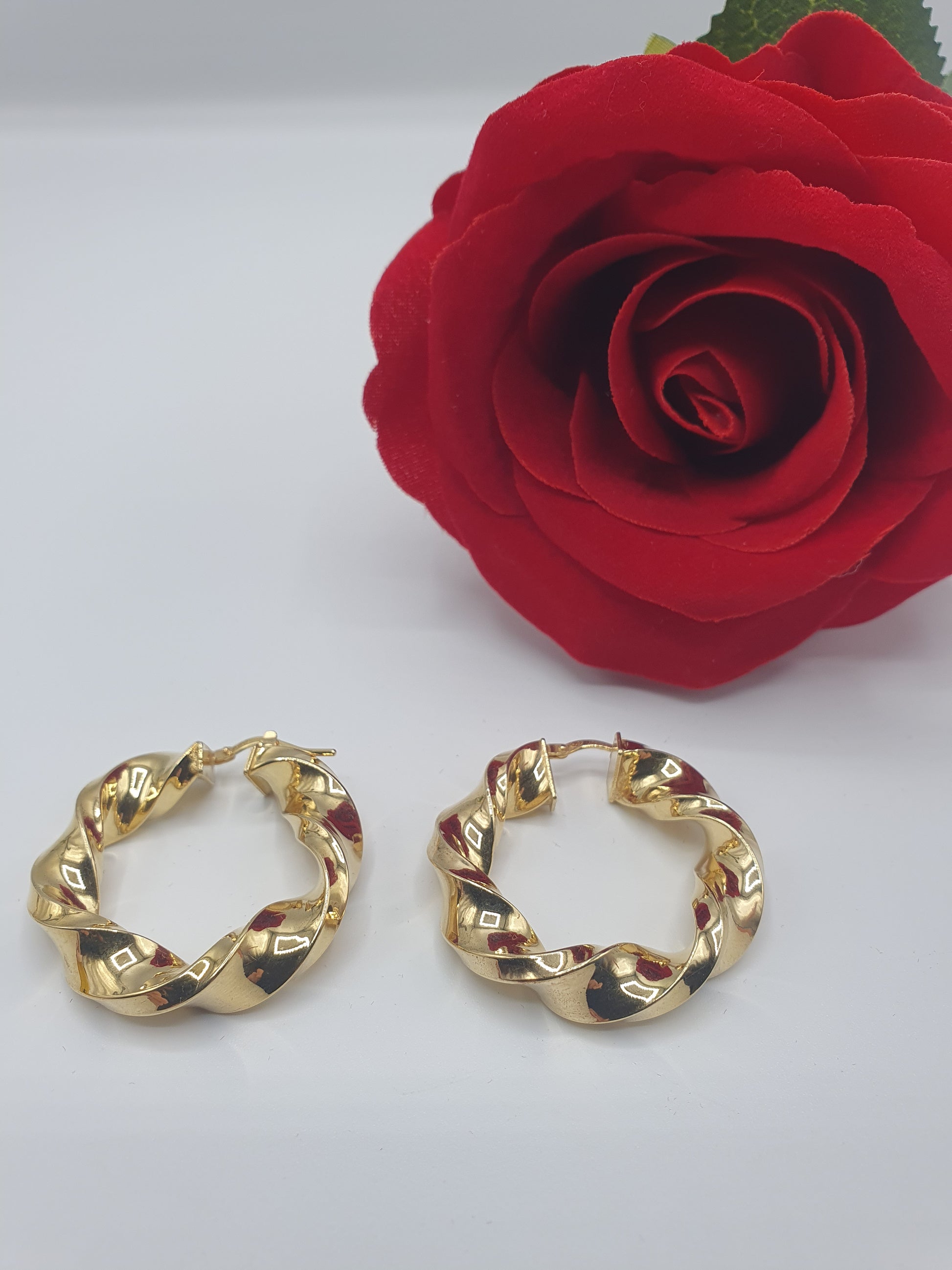 Orecchini cerchio torcion diametro 3.5 cm spessore 8mm in argento 925 placcato oro 18kt